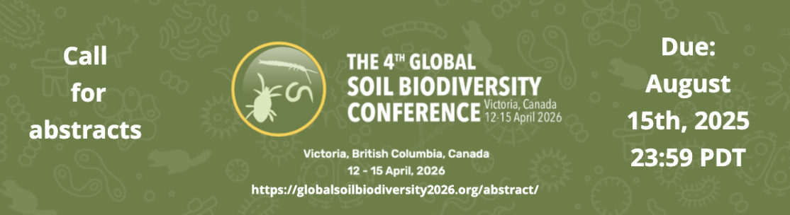 The abstract submission deadline for the GSB Conference 2026 has been EXTENDED! Abstracts are now due August 15th, 2025 23:59 PDT. Abstracts should align with a minimum of one of seven different themes: 1. Soil Biodiversity Under Threat, 2. Soil Biodiversity as Nature-Based Solutions, 3. Soil Biodiversity Science: From Theory to Practice, 4. Innovations in Soil Biodiversity Research, 5. Patterns in Soil Biodiversity: Space and Time, 6. Soil Biodiversity Across Systems and Taxa, and 7. From Research to Action: Policy, Health & Society.
